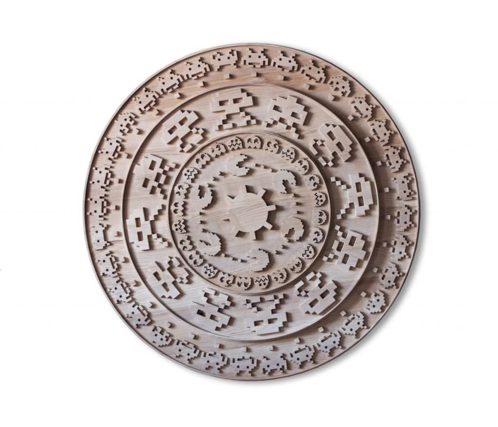 Творча головоломка і предмет мистецтва, що складається з п’яти дерев’яних свічників. Всі деталі підходять одна до одної, тому ви можете зробити від одного до п’яти свічників.
