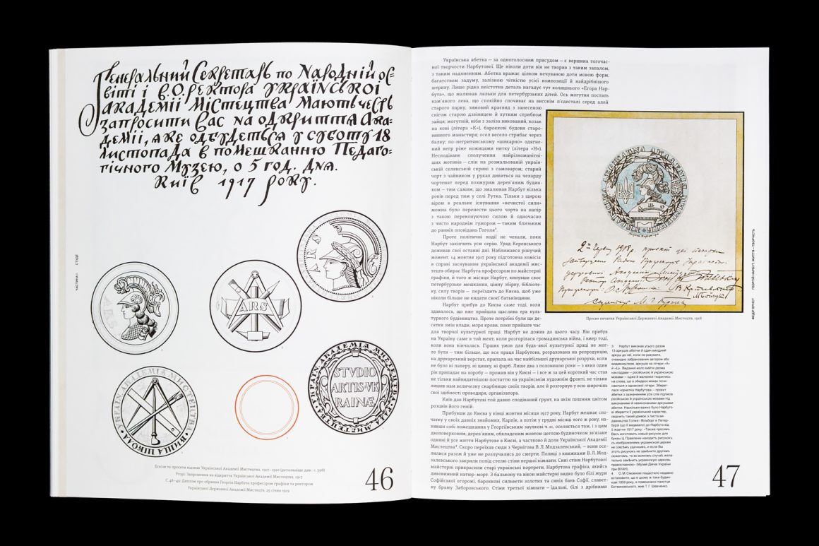 Звісно, підступаючи до складної та часом болючої теми української візуальної ідентичності, ми не могли не думати, якою візуальною мовою ми маємо говорити про історію. Ми пам’ятаємо минуле, але живемо сьогодні, і націлені у майбутнє, тож вважаємо, що стилізація та імітація історичного стилю тільки завадить схопити головне, що є в книжці — а це і є сам Нарбут та його надбання. Разом з редактором книги Богданом Завітієм ми пройшли важливий шлях від наміру буквального репринту збірника до відтворення його духу та змісту сучасними засобами.