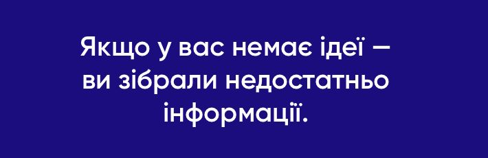 Дизайнер повинен бути аналітиком і маркетологом стільки часу, скільки буде потрібно для ясного розуміння цілей і завдань проєкту. Навіть якщо у вашій компанії є відділ маркетингу і вам приносять готову інформацію.