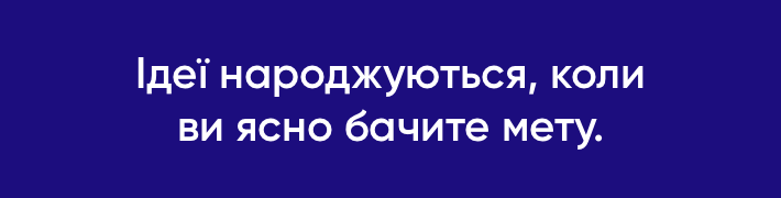 Геніальні ідеї з’являються тільки як наслідок розуміння суті завдання. Коли нам відома і зрозуміла кінцева мета, мозок активно шукає способи її досягнення. Якщо мета не визначена, мозок не народжує ідею або — ще гірше — генерує хибну ідею. Таку, яка не вирішує проблему або перешкоджає її вирішенню.