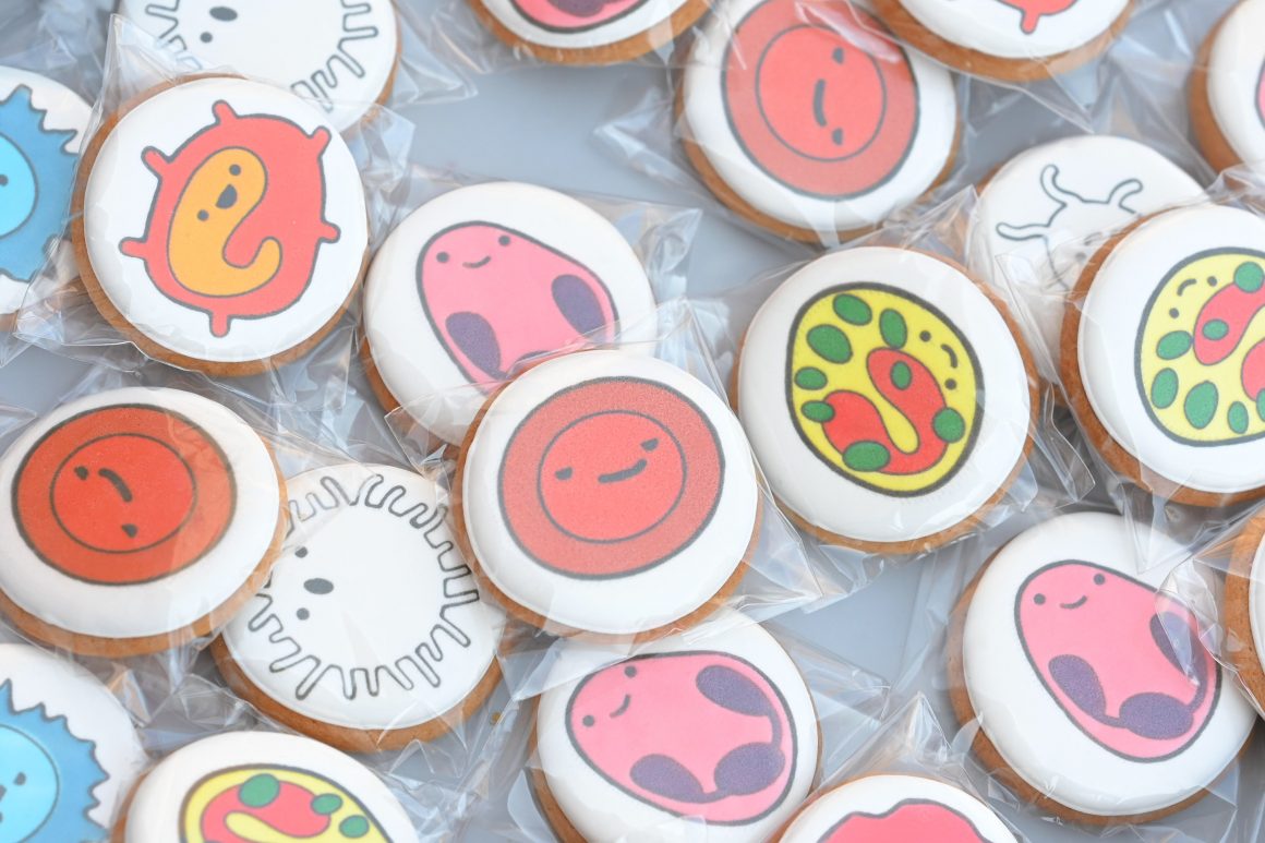 — Ух! 17, хоча спершу було 9. У нас були тільки хороші клітини крові, такі як еретроцит, лейкоцит, тромбоцит, еозинофіл, нейтрофіл і так далі, але донори швидко зібрали цю колекцію. Відтак Даші довелося малювати нові значки — спинились на антигероях. Ми додали клітини різних вірусів: бацилу, шигелу, коки, спірилу. Вони усі насправді дуже милі, тому ніколи не залишаються поза увагою наших донорів. Значки зараз ми замовляємо у Китаї, а на початку це була співпраця з MacPaw.