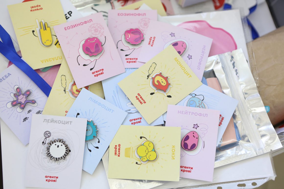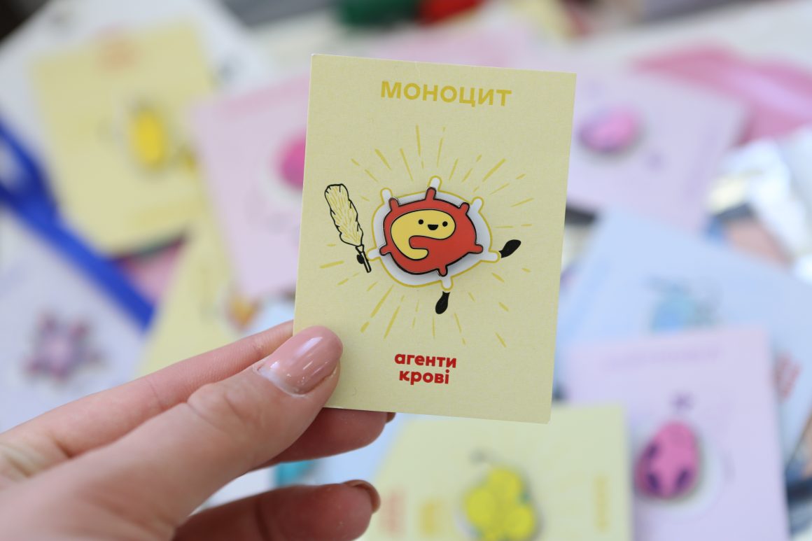 — Ми змінили обкладинку для них, вписали туди нову назву, переклали опис клітин крові українською, але основний дизайн залишився ідентичний. Ці значки для нас намалювала Даша Урвачова. Колекція має неабияке значення, бо саме нагорода клітинами крові є потішним подарунком за донацію, так і формується постійне донорство. Потрібно усього лиш зацікавити аудиторію.