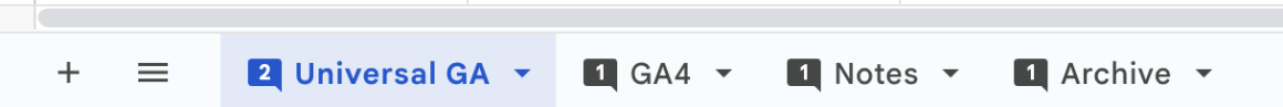 Оскільки в Google Analytics 4 поки немає такої можливості (навідміну від Universal Google Analytics), то я веду такі нотатки прямо в цій таблиці.