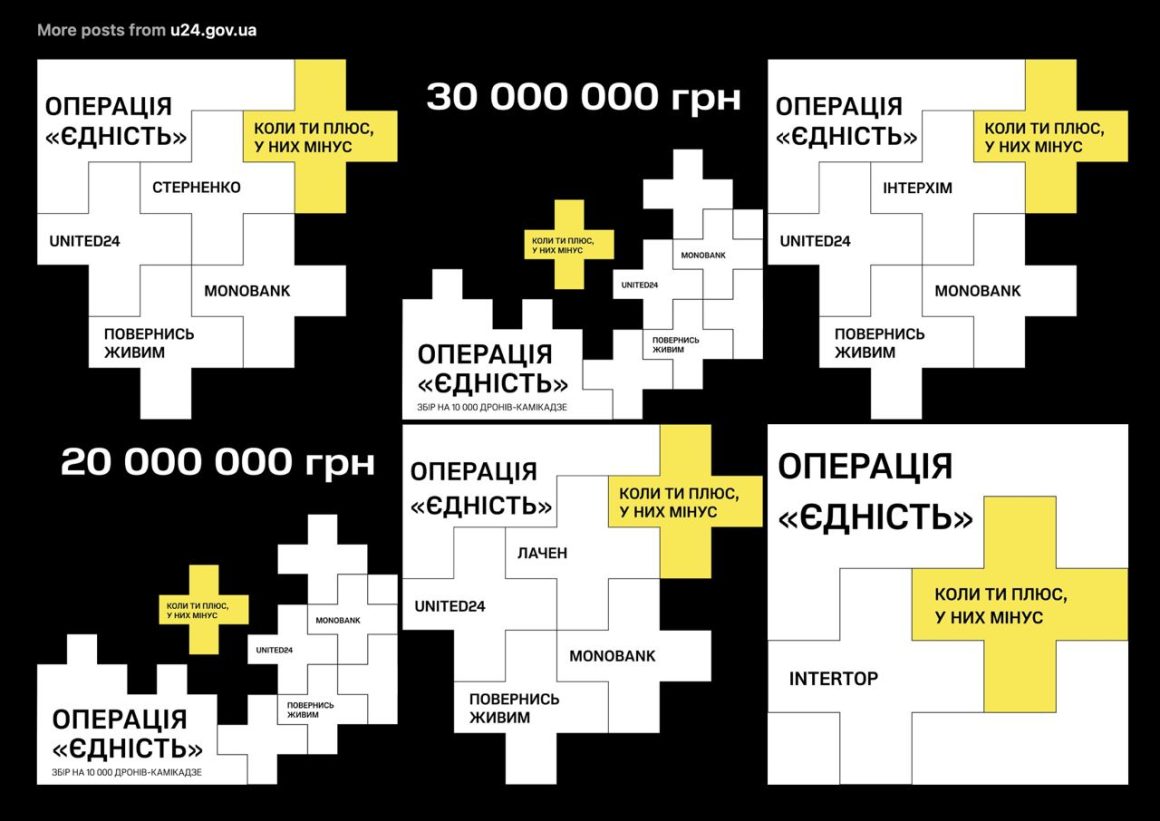 “Операція “Єдність” – один і з найуспішніших зборів в українському фандрейзингу, це вже очевидно. Такий успіх цього збору закладений у самому його слогані – “Коли ти плюс, у них мінус”, що викликає у людей відчуття спорідненості, причетності”.