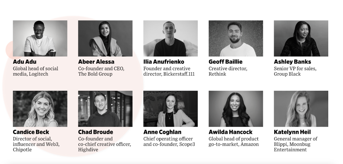 Список “40 до 40” відзначає найбільш обдарованих представників індустрії, включаючи геніїв програмування, майстрів Web3, ініціаторів нових бізнесів, та підприємців, а також високопрофесійних фахівців в маркетингу та рекламі. У попередні роки титул найкращих від AdAge мали Девід Огілві (його ще називають “батьком реклами), Елвін Ахенбаум (засновник Інституту маркетингу), Білл Бекер (найвідоміший маркетолог “Кока-коли) — люди, що “рухали індустрію” вперед.