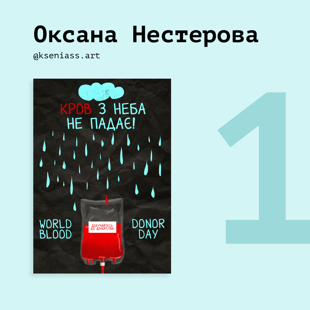 Громадська організація «Агенти крові» оголосила переможців п’ятого щорічного конкурсу постерів до Всесвітнього дня донора крові. Темою ARTDONATION 2024 став заклик до піклування «Турбота починається з себе».
