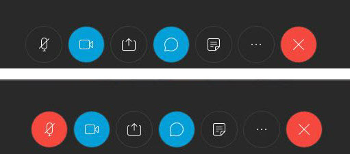 - Інший колір (синій) використовується для позначення активного стану інших кнопок, таких як «Відео» і «Чат» (наприклад, синя іконка відео означає, що відео ввімкнено).