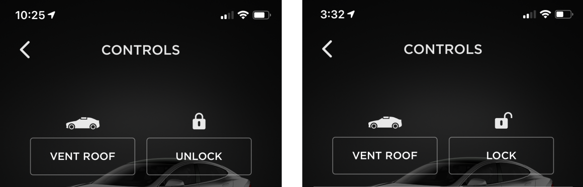 Отже, які загальні рекомендації щодо кнопок перемикання станів, які є подвійними індикаторами станів? Найбезпечніше рішення — використовувати 2 елементи інтерфейсу, один для поточного стану, а інший для перемикання стану, як у прикладі з Tesla.
