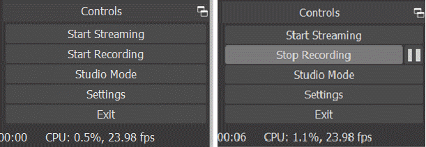 Якщо кнопка використовується для перемикання між двома станами, щоб відповідати цій рекомендації, вона також повинна змінити мітку, як у прикладі Tesla вище або у прикладі OBS нижче.